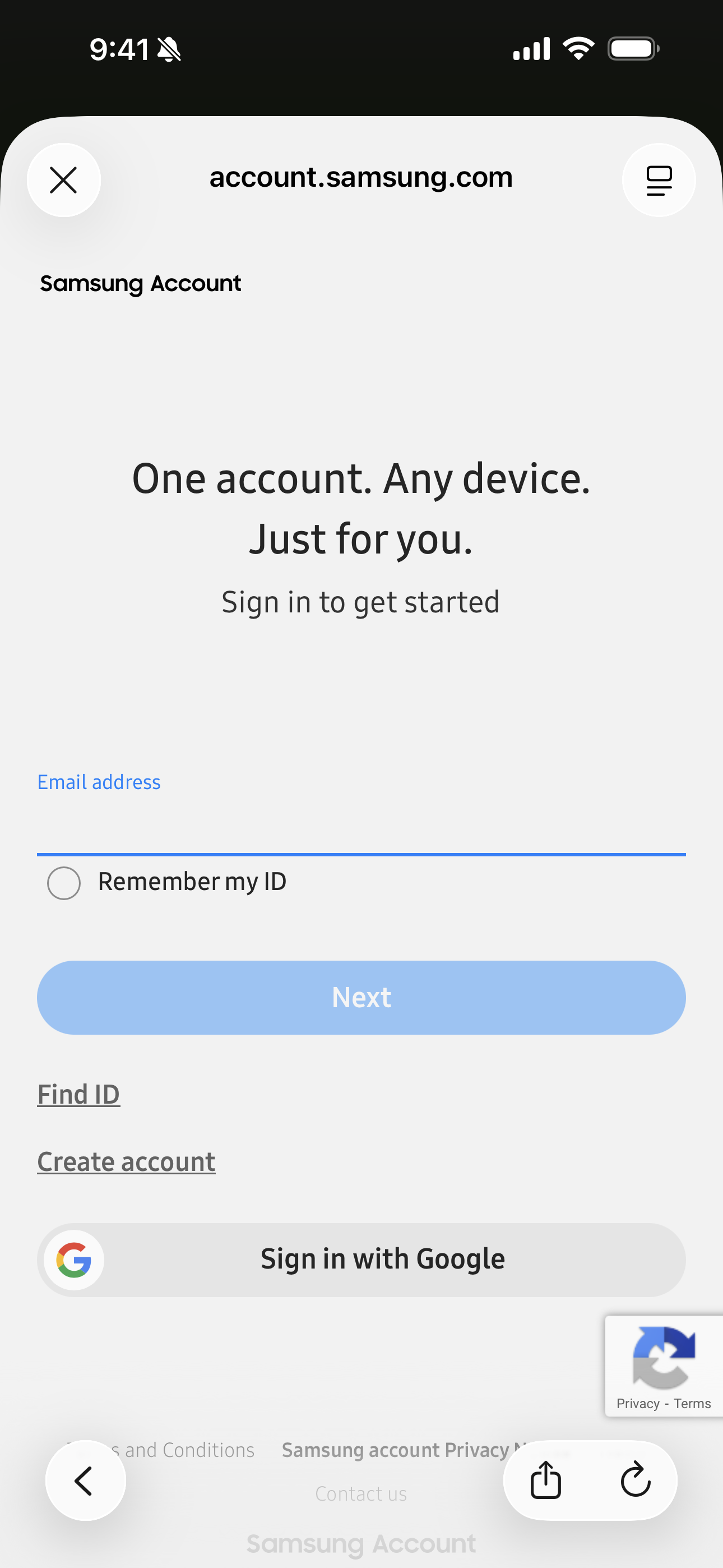 Creating an account from a smart phone: