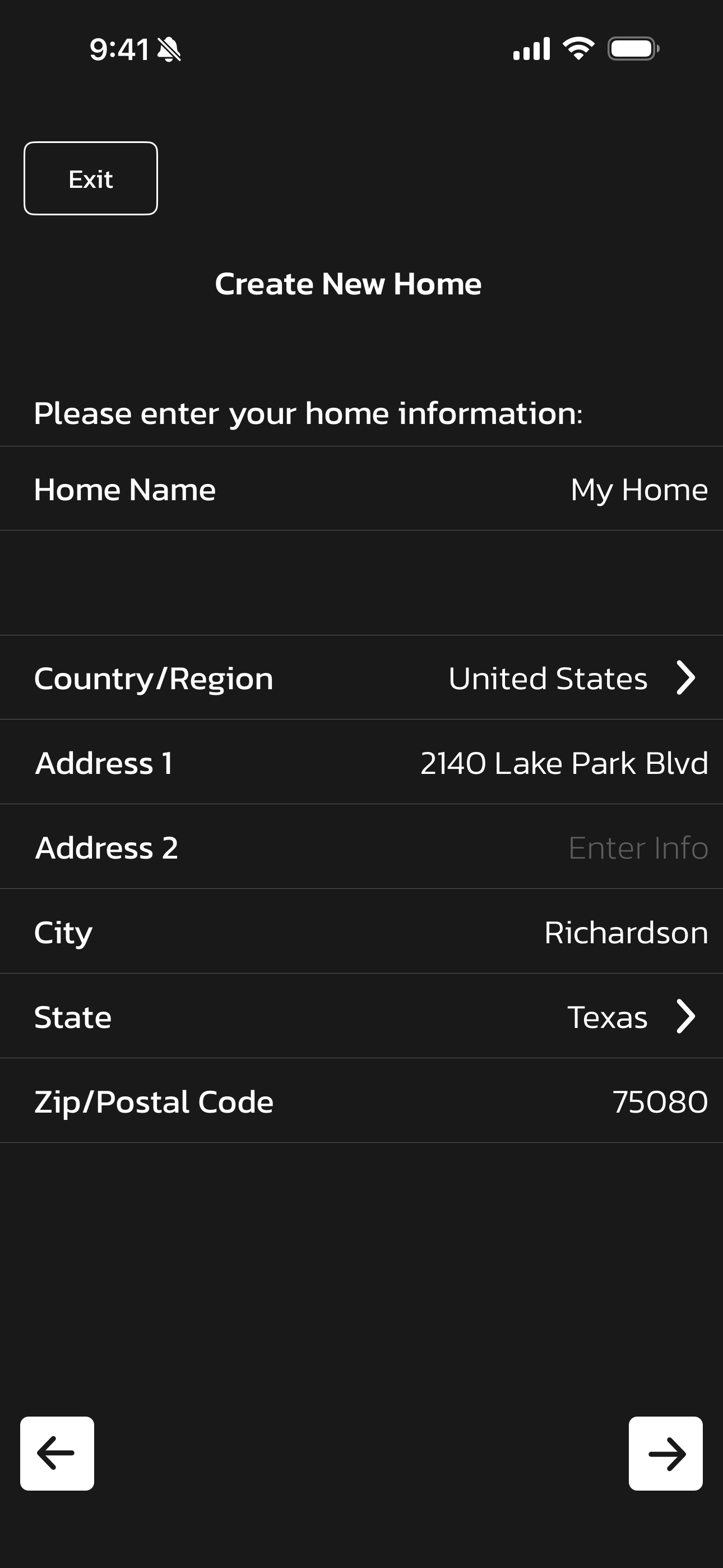 • If you selected Add New Home, Enter the home information required on this screen.