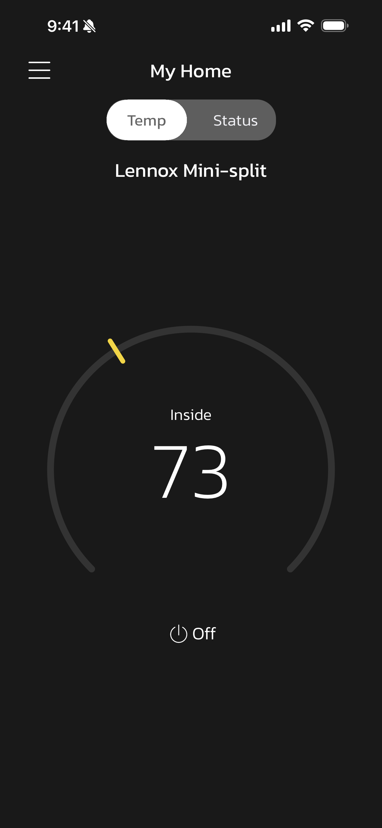 • Select the Temp button from the Status or My Home screen to return to the thermostat home screen or last zone viewed.