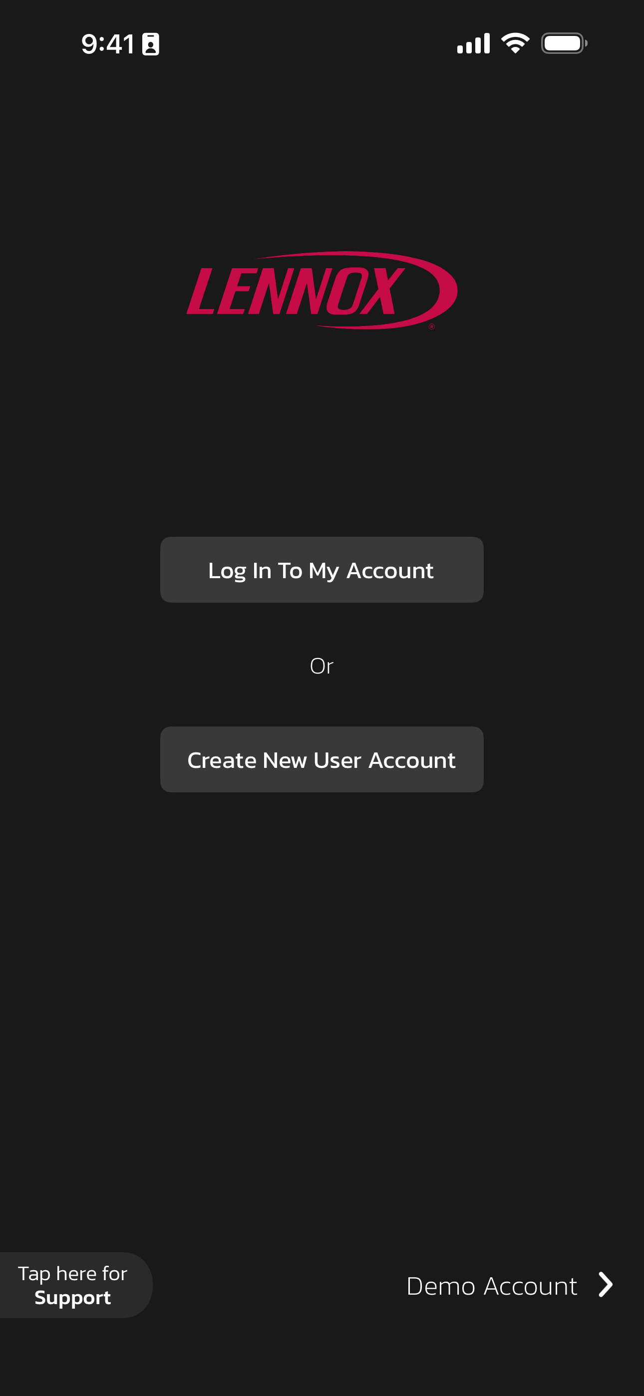 From the Lennox Home App, if you are signed out, then tap/click on the "Trouble Logging In?" button.